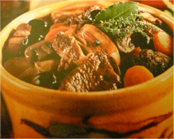 4. Préchauffer le four à 180° (th6), enfourner la cocotte pour 3h. Servir très chaud dans la cocotte accompagnée de pâtes fraîches.